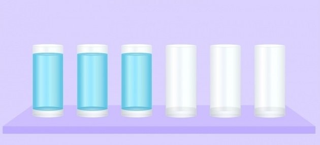 5. 3 teli és 3 üres poharat látsz egymás után a sorban. Hogyan éred el, hogy váltakozva álljanak úgy, hogy csak egyet mozgatsz el? Lejjebb találod a megoldást, ha magadtól nem jössz rá! - - - - - Az egyik pohárból átöntöd a vizet egy másikba, így: Lapozz egyet a következő fejtörőért!