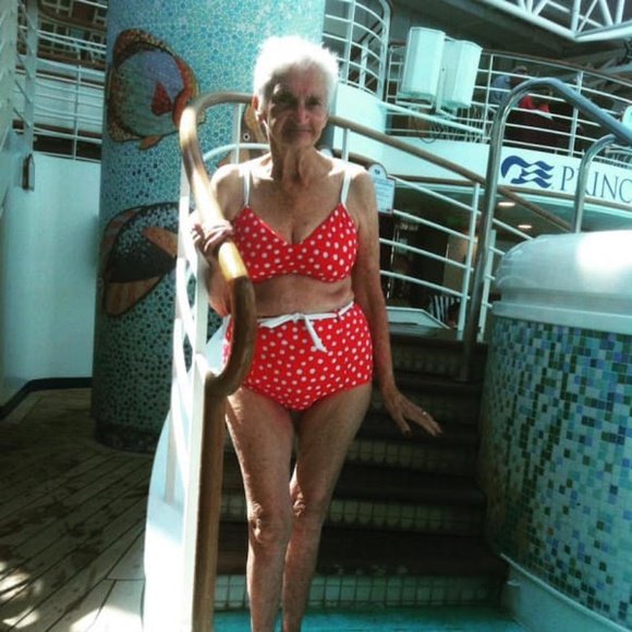 Lehet, hogy Irene kilencven éves, de ez nem akadályozta meg abban, hogy egy piros, kétrészes fürdőruhában élvezze a szabadidejét.