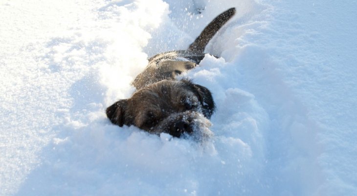 5. Tökéletesen időzített kép egy kutya első hócsatájáról