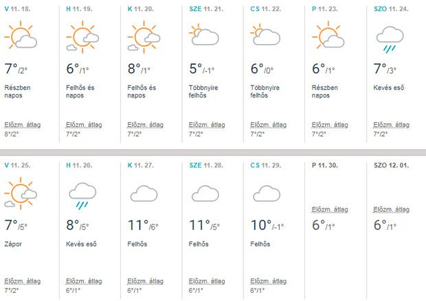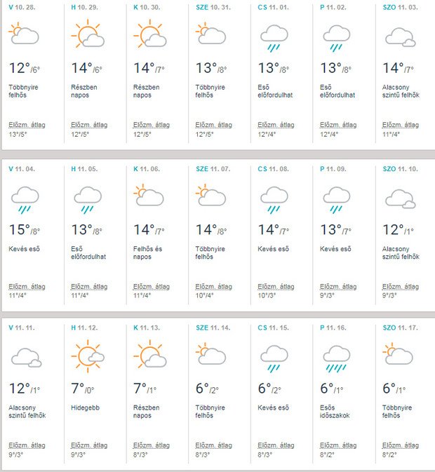 Novemberben többnyire 10 fok körüli hőmérsékletek várhatók az előrejzés szerint a hónap első felében. Az ősz utolsó pár hete száraznak ígérkezik, elvétve fordul majd elő csapadék.