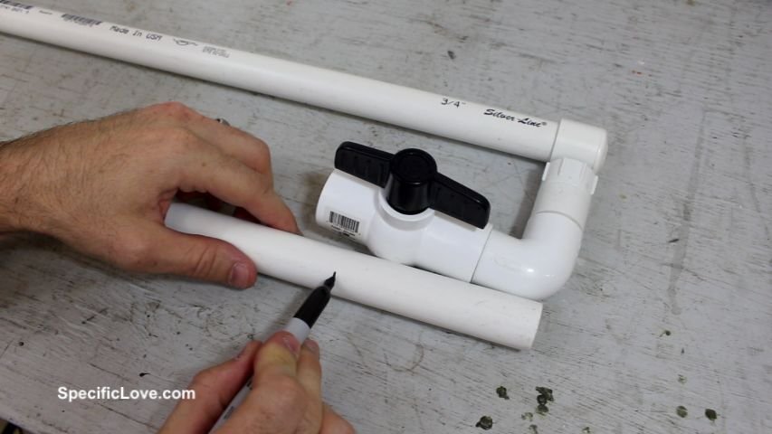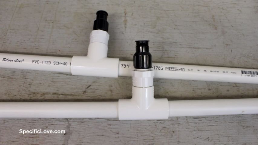 Az egyik láb aljára egy egyszerű kupak kerül majd, a másik láb aljára pedig a nyitható/zárható szelep és a szűrős slag csatlakozó. Ezt a két elemet egy könyök idommal erősítsd az oszlophoz, hogy a slag vízszintesen csatlakozhasson a rendszerhez.