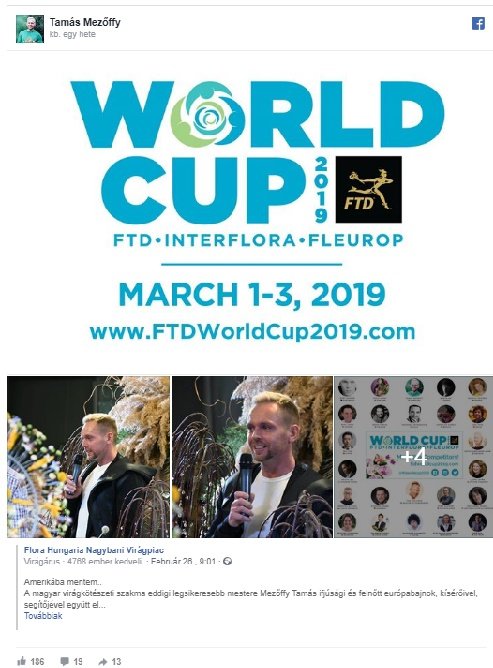 Három éve első lett Mezőffy Tamás a Europe Cup – European Florist Championship versenyen, március első hétvégéjén pedig az Interflora World Cup 2019 világversenyen harmadik helyezést ért el – szúrta ki a Balkonada – balkonada.cafeblog.hu.