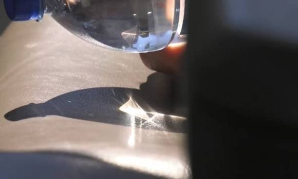 Amikor odafordult, hogy megnézze mi a helyzet, látta, hogy a fény átszűrődött a palackon és olyan erejűvé vált, hogy tőle az anyósülés kárpitja elkezdett égni és füstölni.